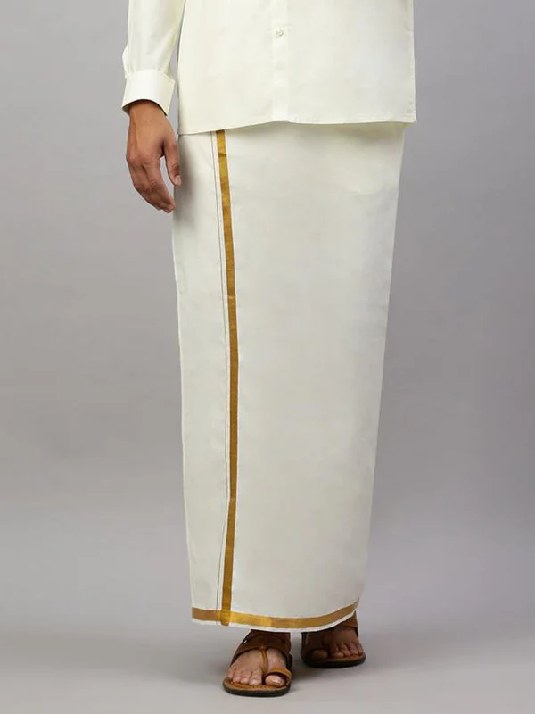 Specifications of Mens Cotton Gallery Cream Single Dhoti with & 3/4"