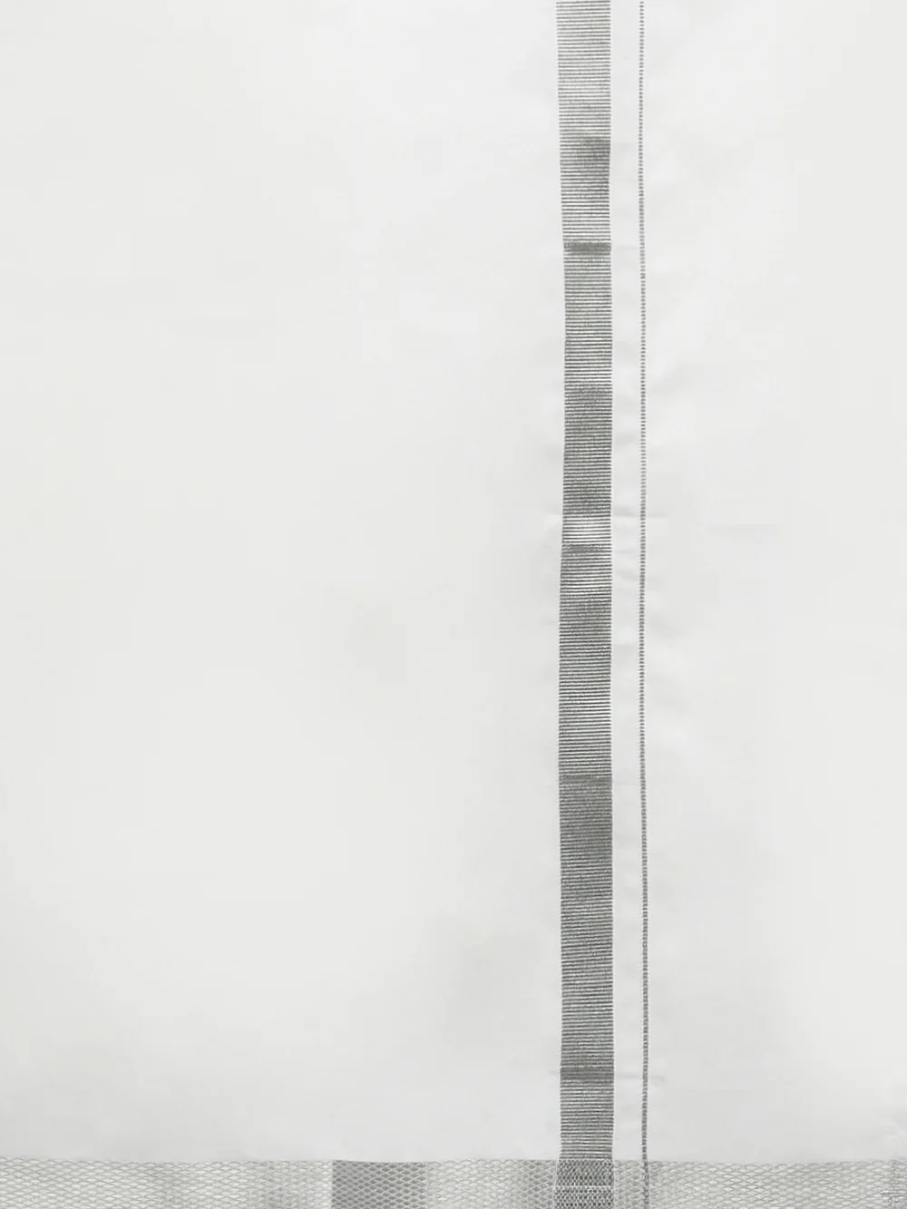 Men Cotton Blend Single Layer White Dhoti with 3/4"Silver Jari Border